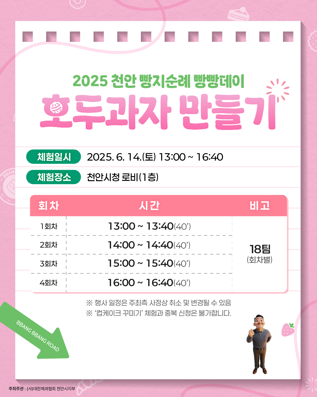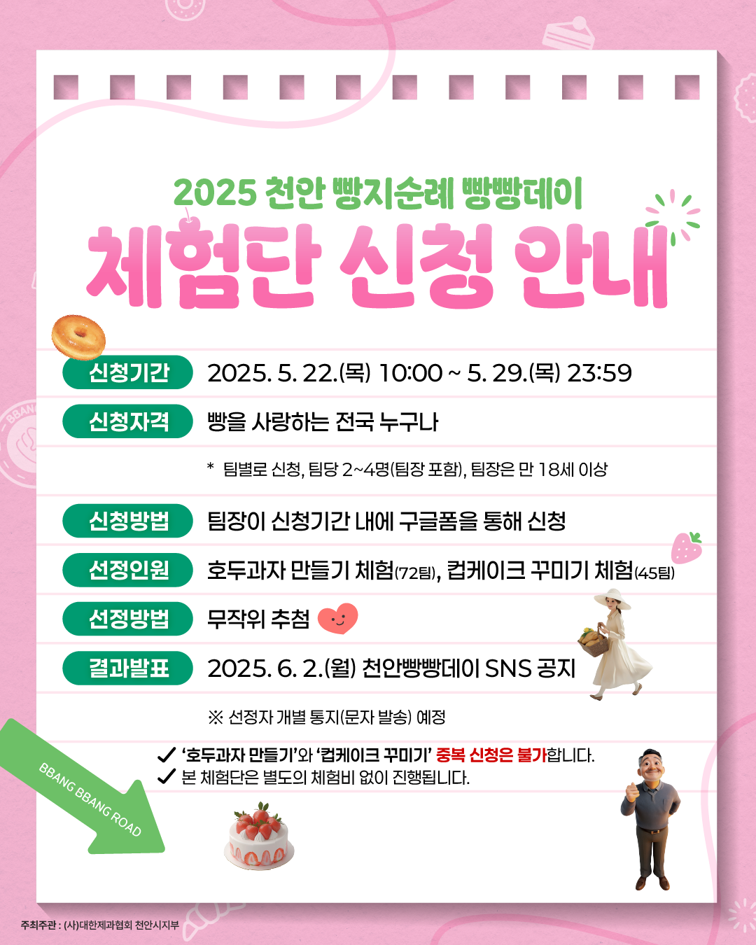 - 선정 발표: 6월 2일(월), 천안 빵빵데이 SNS 공지